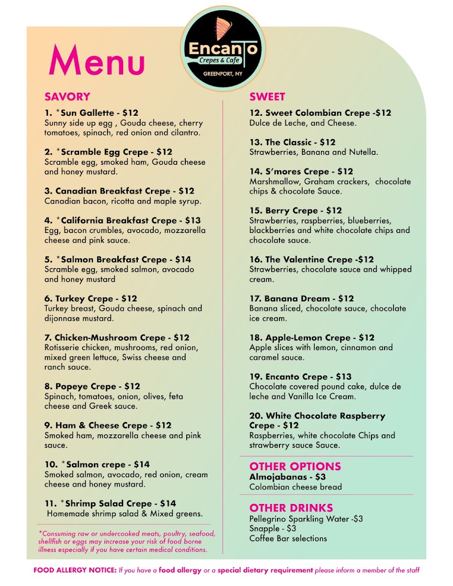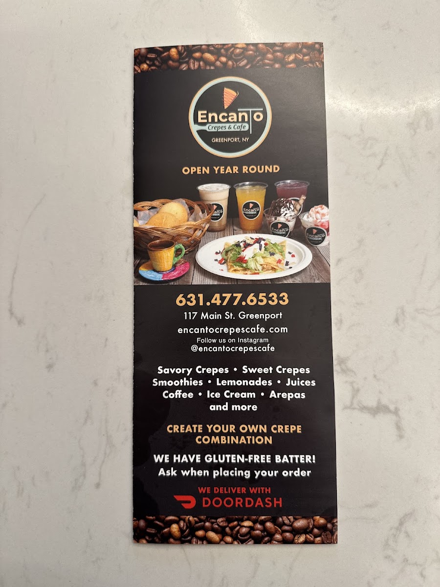 Welcome to Encanto Crepes & Cafe, a charming eatery nestled in Greenport, NY. With a menu that tantalizes the palate, each crepe is a delightful journey through flavors. Start your culinary adventure with savory options like the Pepper Steak Crepe, which features flank steak drizzled in a rich wine cream sauce, or the hearty Philly Cheese Crepe with roast beef and provolone. For those craving something sweet, the Choco Dream Cup offers a decadent twist with chocolate cake and ice cream.